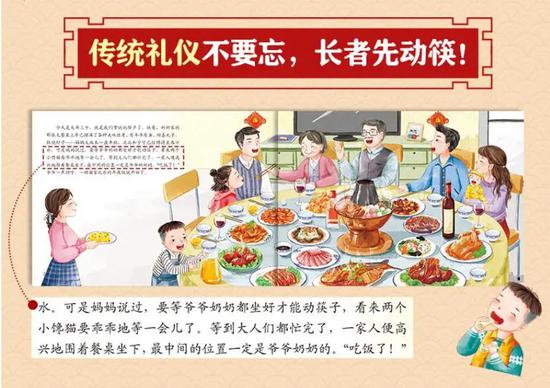 故事和图画在帮助孩子了解与“春节”相关的传统文化的同时,还潜移默化地向孩子传输着“尊敬长辈”的传统美德。